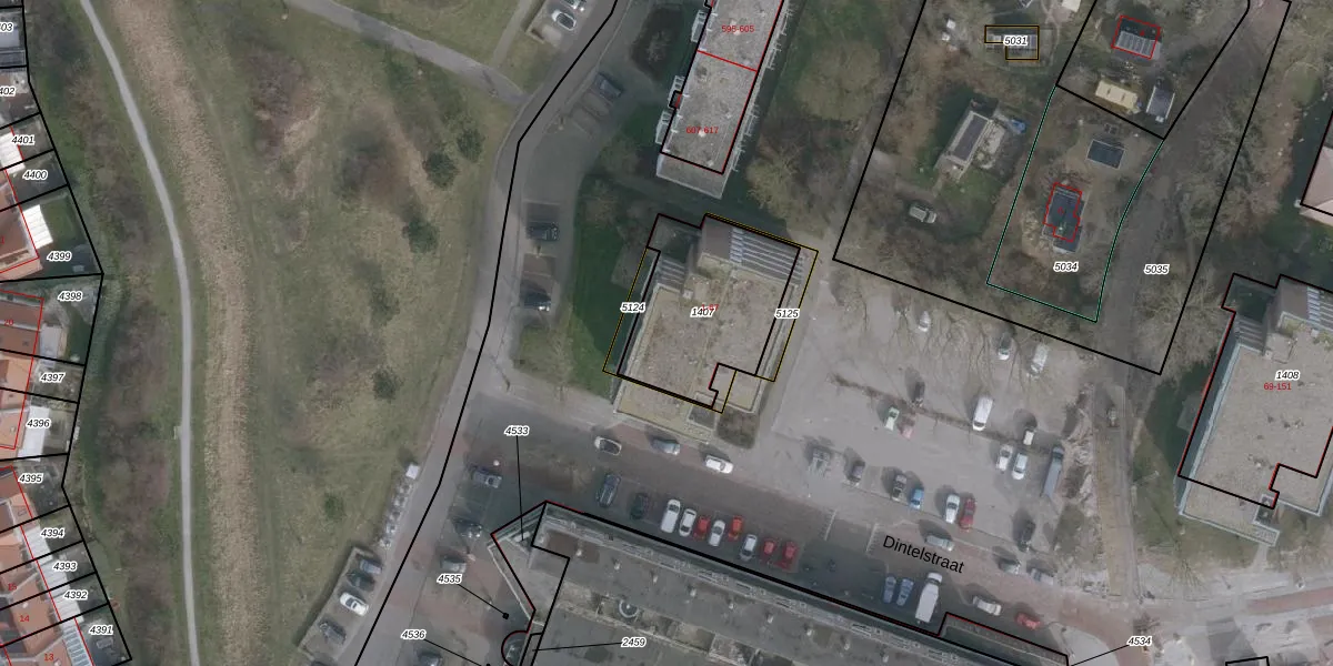 Het perceel waarop Dintelstraat 23 staat heeft een oppervlakte van 523 m². Dit is een groot perceel. De perceeloppervlakte wordt geregistreerd door het Kadaster. Gedetailleerde informatie over de maten van dit perceel kunt u vinden in het rapport Kadastrale kaart met maatvoering van Dintelstraat 23.