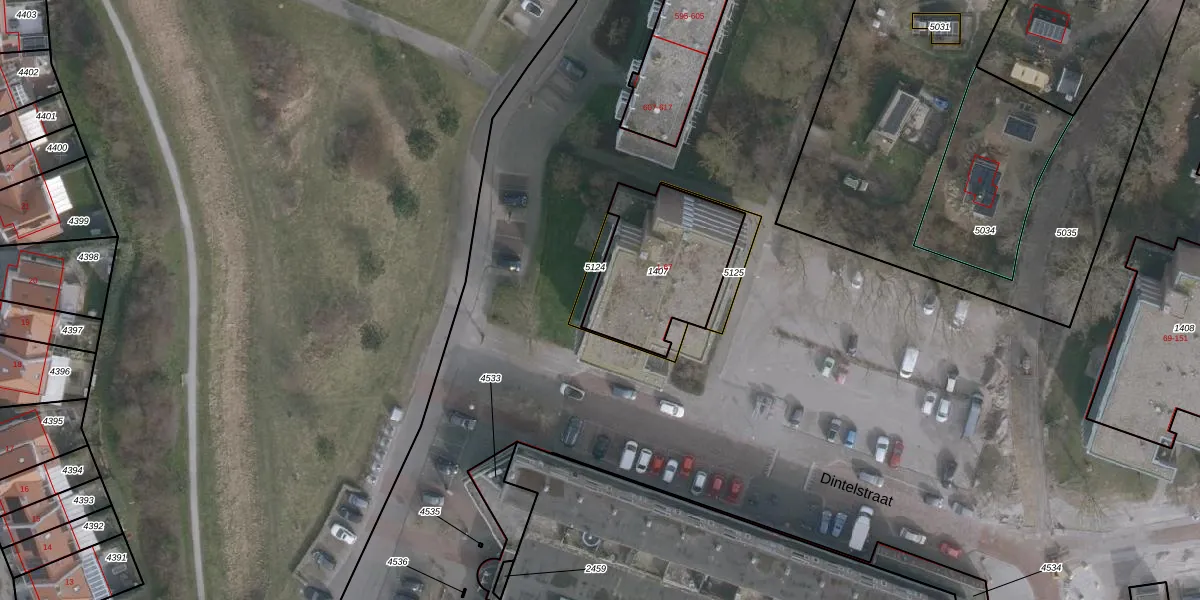 Het perceel waarop Dintelstraat 25 staat heeft een oppervlakte van 523 m². Dit is een groot perceel. De perceeloppervlakte wordt geregistreerd door het Kadaster. Gedetailleerde informatie over de maten van dit perceel kunt u vinden in het rapport Kadastrale kaart met maatvoering van Dintelstraat 25.