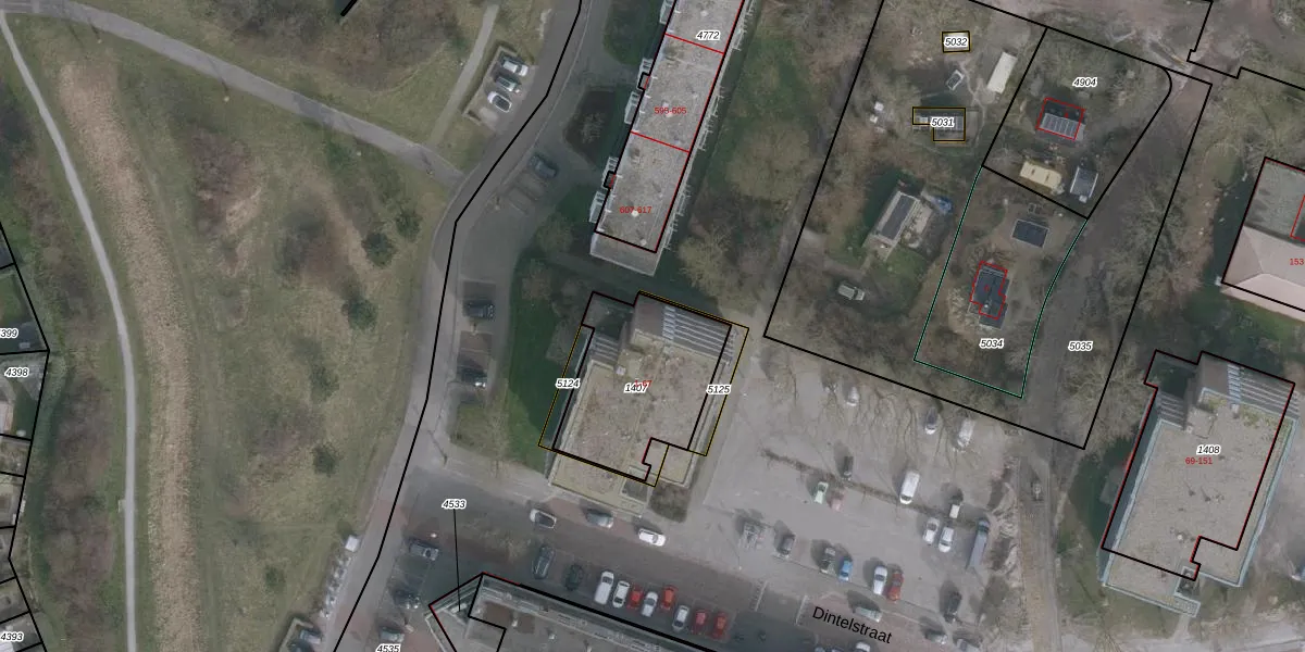Het perceel waarop Dintelstraat 33 staat heeft een oppervlakte van 523 m². Dit is een groot perceel. De perceeloppervlakte wordt geregistreerd door het Kadaster. Gedetailleerde informatie over de maten van dit perceel kunt u vinden in het rapport Kadastrale kaart met maatvoering van Dintelstraat 33.
