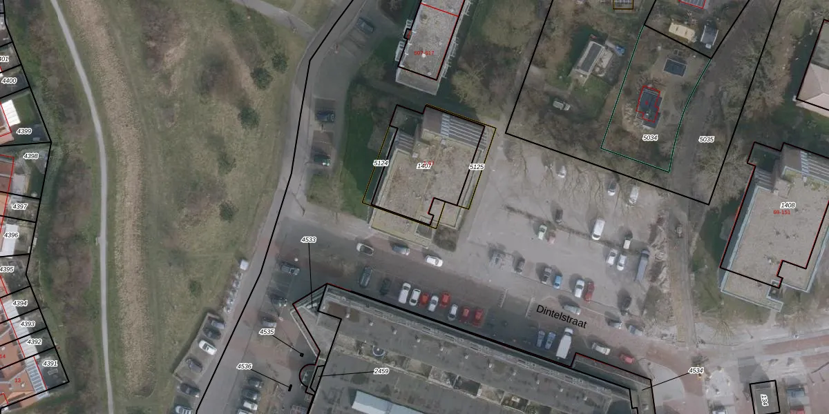 Het perceel waarop Dintelstraat 63 staat heeft een oppervlakte van 523 m². Dit is een groot perceel. De perceeloppervlakte wordt geregistreerd door het Kadaster. Gedetailleerde informatie over de maten van dit perceel kunt u vinden in het rapport Kadastrale kaart met maatvoering van Dintelstraat 63.