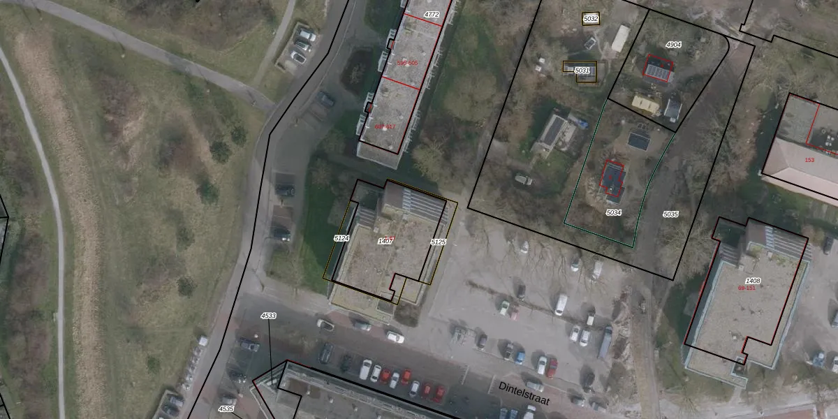 Het perceel waarop Dintelstraat 65 staat heeft een oppervlakte van 523 m². Dit is een groot perceel. De perceeloppervlakte wordt geregistreerd door het Kadaster. Gedetailleerde informatie over de maten van dit perceel kunt u vinden in het rapport Kadastrale kaart met maatvoering van Dintelstraat 65.