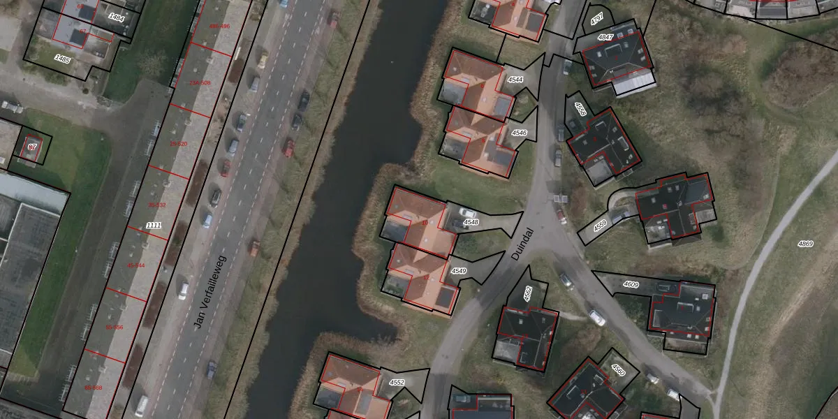 Gebruik de zoekbalk of klik op een perceel voor informatie over de adressen binnen dit perceel.