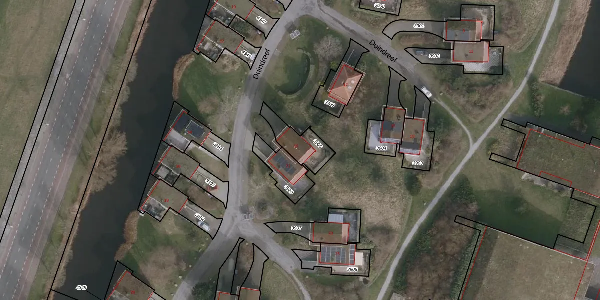 Het perceel waarop Duindreef 19 staat heeft een oppervlakte van 210 m². Dit is een middelgroot perceel. De perceeloppervlakte wordt geregistreerd door het Kadaster. Gedetailleerde informatie over de maten van dit perceel kunt u vinden in het rapport Kadastrale kaart met maatvoering van Duindreef 19.