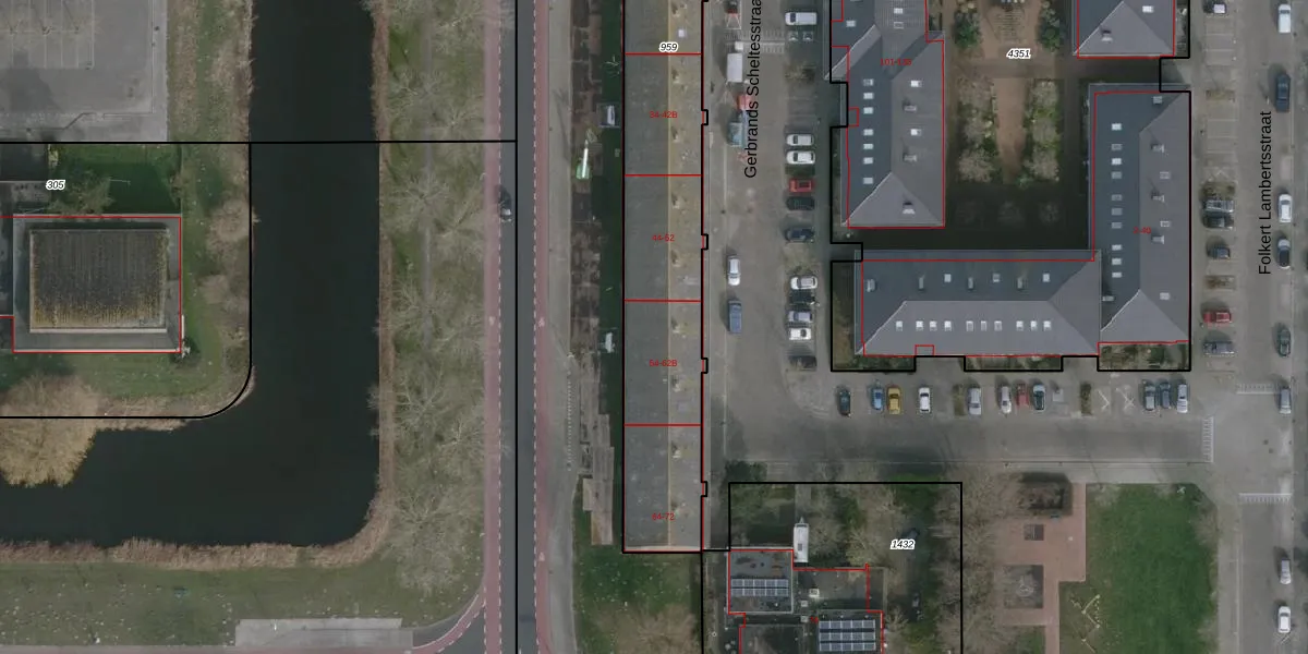 Het perceel waarop Gerbrands Scheltesstraat 54 staat heeft een oppervlakte van 1630 m². Dit is een zeer groot perceel. De perceeloppervlakte wordt geregistreerd door het Kadaster. Gedetailleerde informatie over de maten van dit perceel kunt u vinden in het rapport Kadastrale kaart met maatvoering van Gerbrands Scheltesstraat 54.