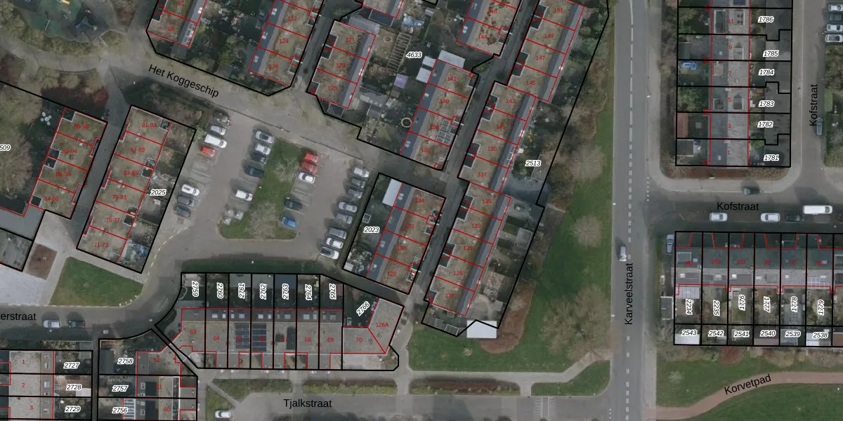 Het perceel waarop Het Koggeschip 134 staat heeft een oppervlakte van 416 m². Dit is een groot perceel. De perceeloppervlakte wordt geregistreerd door het Kadaster. Gedetailleerde informatie over de maten van dit perceel kunt u vinden in het rapport Kadastrale kaart met maatvoering van Het Koggeschip 134.