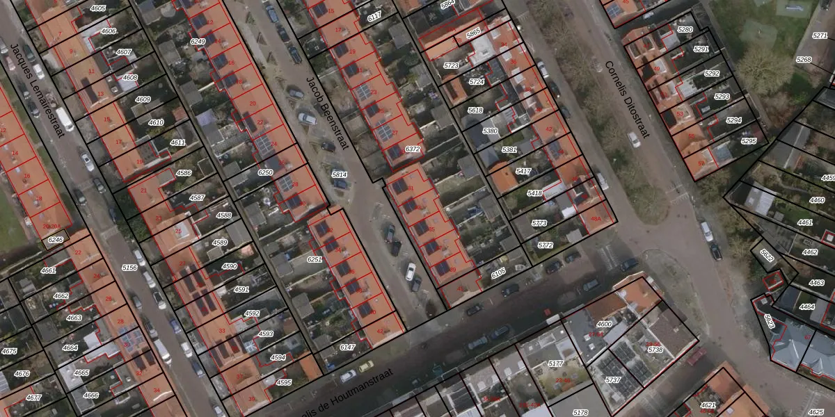 Het perceel waarop Jacob Beenstraat 33 staat heeft een oppervlakte van 1520 m². Dit is een zeer groot perceel. De perceeloppervlakte wordt geregistreerd door het Kadaster. Gedetailleerde informatie over de maten van dit perceel kunt u vinden in het rapport Kadastrale kaart met maatvoering van Jacob Beenstraat 33.