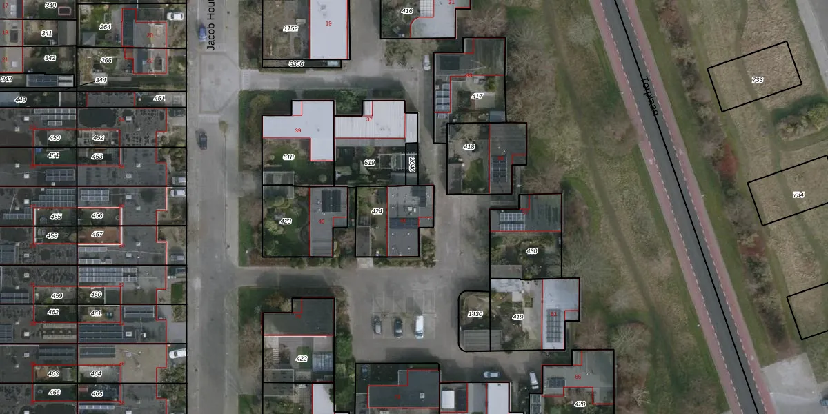 Gebruik de zoekbalk of klik op een perceel voor informatie over de adressen binnen dit perceel.