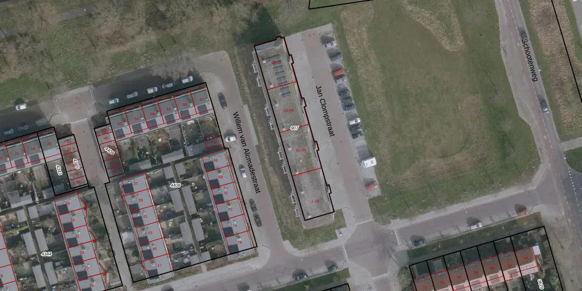 Het perceel waarop Jan Clompstraat 33 staat heeft een oppervlakte van 669 m². Dit is een groot perceel. De perceeloppervlakte wordt geregistreerd door het Kadaster. Gedetailleerde informatie over de maten van dit perceel kunt u vinden in het rapport Kadastrale kaart met maatvoering van Jan Clompstraat 33.