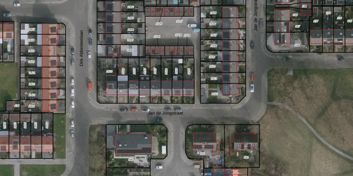 Gebruik de zoekbalk of klik op een perceel voor informatie over de adressen binnen dit perceel.