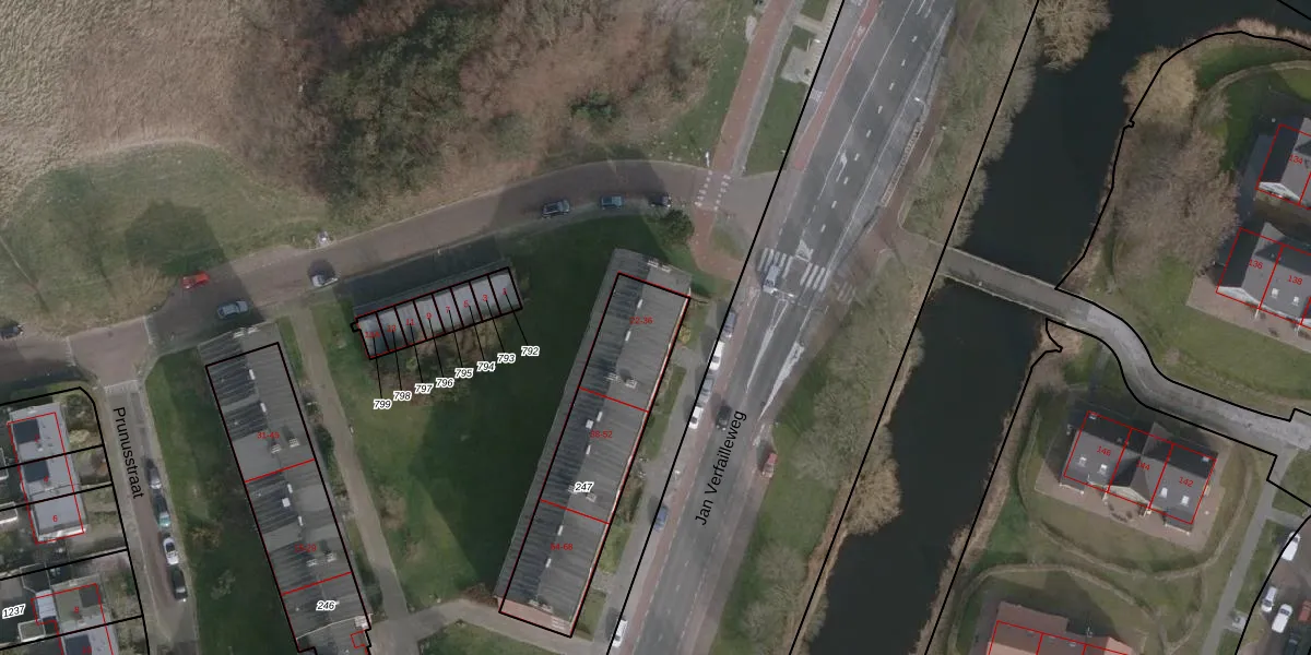Het perceel waarop Jan Verfailleweg 28 staat heeft een oppervlakte van 637 m². Dit is een groot perceel. De perceeloppervlakte wordt geregistreerd door het Kadaster. Gedetailleerde informatie over de maten van dit perceel kunt u vinden in het rapport Kadastrale kaart met maatvoering van Jan Verfailleweg 28.
