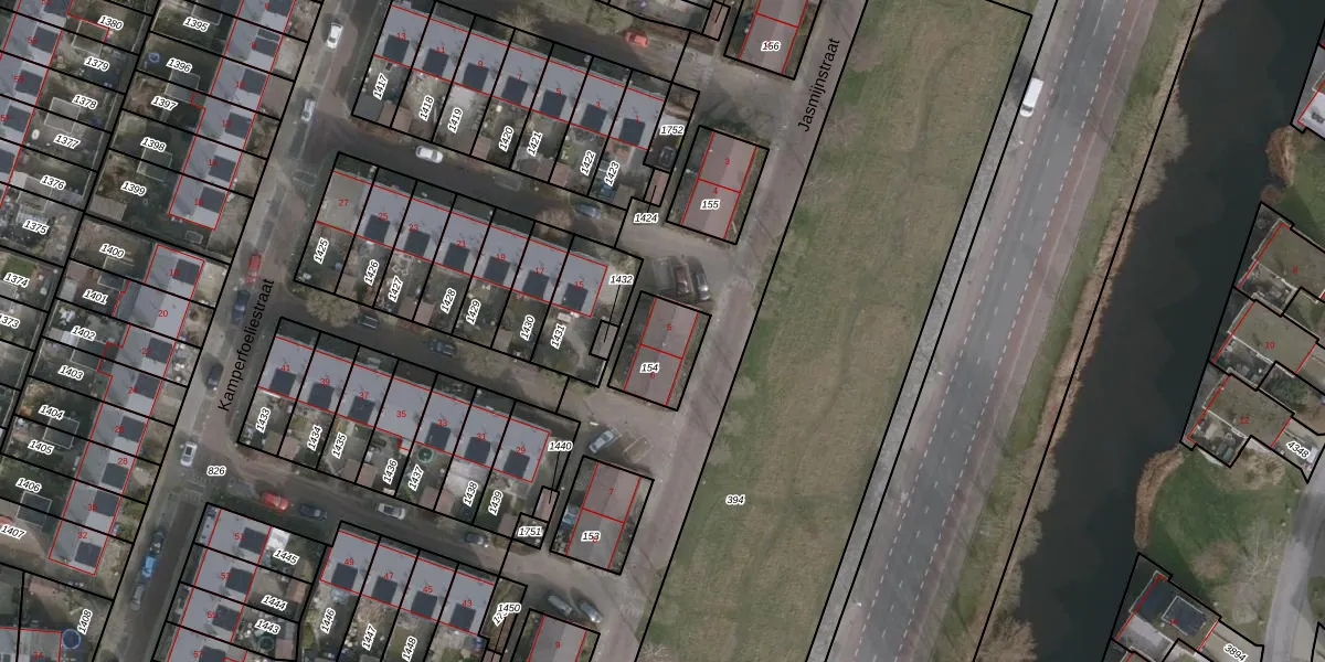 Het perceel waarop Jasmijnstraat 5 staat heeft een oppervlakte van 170 m². Dit is een middelgroot perceel. De perceeloppervlakte wordt geregistreerd door het Kadaster. Gedetailleerde informatie over de maten van dit perceel kunt u vinden in het rapport Kadastrale kaart met maatvoering van Jasmijnstraat 5.