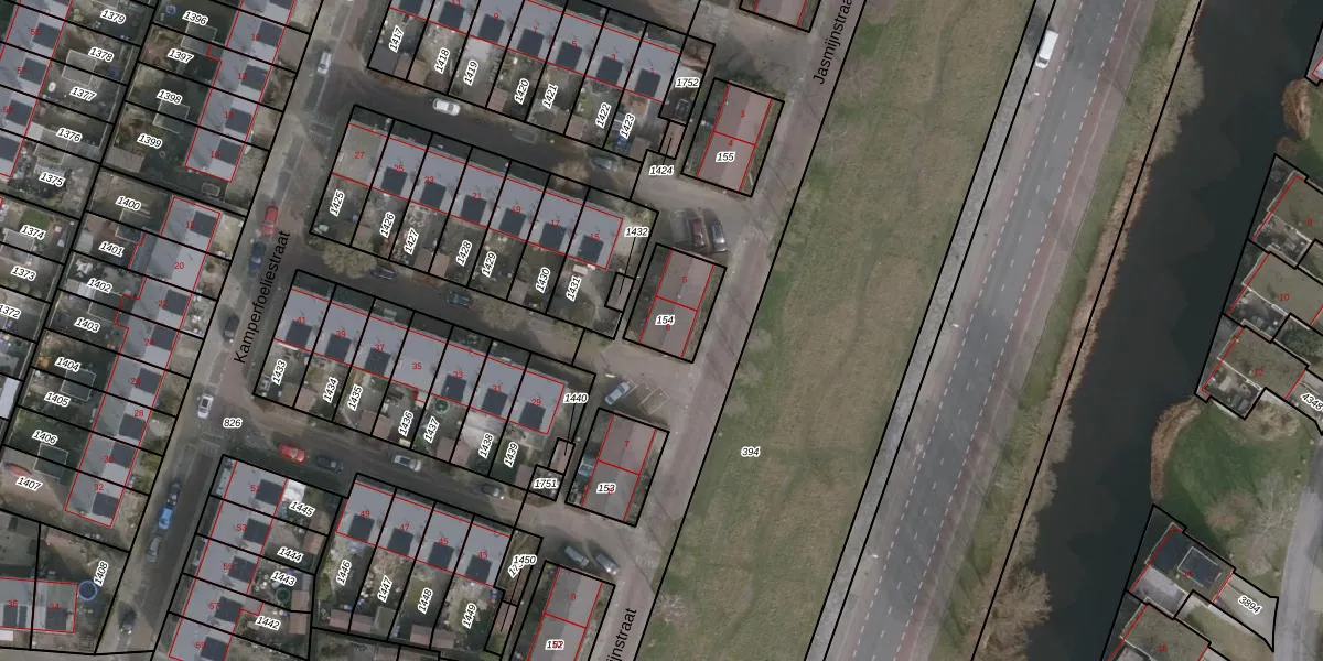 Het perceel waarop Jasmijnstraat 6 staat heeft een oppervlakte van 170 m². Dit is een middelgroot perceel. De perceeloppervlakte wordt geregistreerd door het Kadaster. Gedetailleerde informatie over de maten van dit perceel kunt u vinden in het rapport Kadastrale kaart met maatvoering van Jasmijnstraat 6.