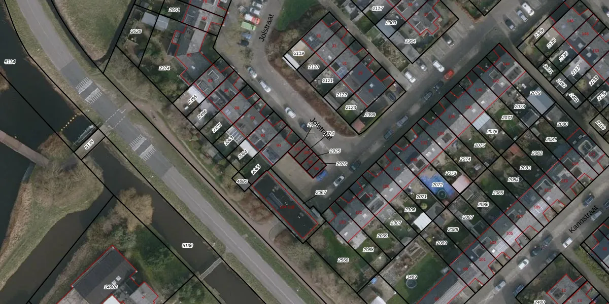 Het perceel waarop Jolstraat 100 staat heeft een oppervlakte van 18 m². Dit is een klein perceel. De perceeloppervlakte wordt geregistreerd door het Kadaster. Gedetailleerde informatie over de maten van dit perceel kunt u vinden in het rapport Kadastrale kaart met maatvoering van Jolstraat 100.
