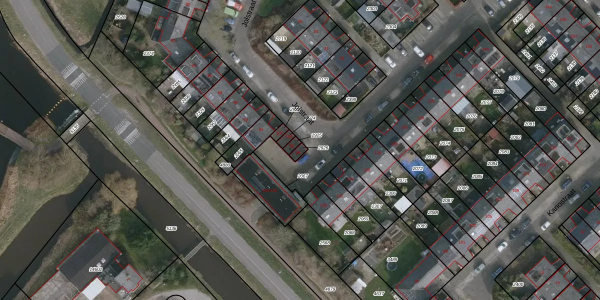 Het perceel waarop Jolstraat 96 staat heeft een oppervlakte van 19 m². Dit is een klein perceel. De perceeloppervlakte wordt geregistreerd door het Kadaster. Gedetailleerde informatie over de maten van dit perceel kunt u vinden in het rapport Kadastrale kaart met maatvoering van Jolstraat 96.