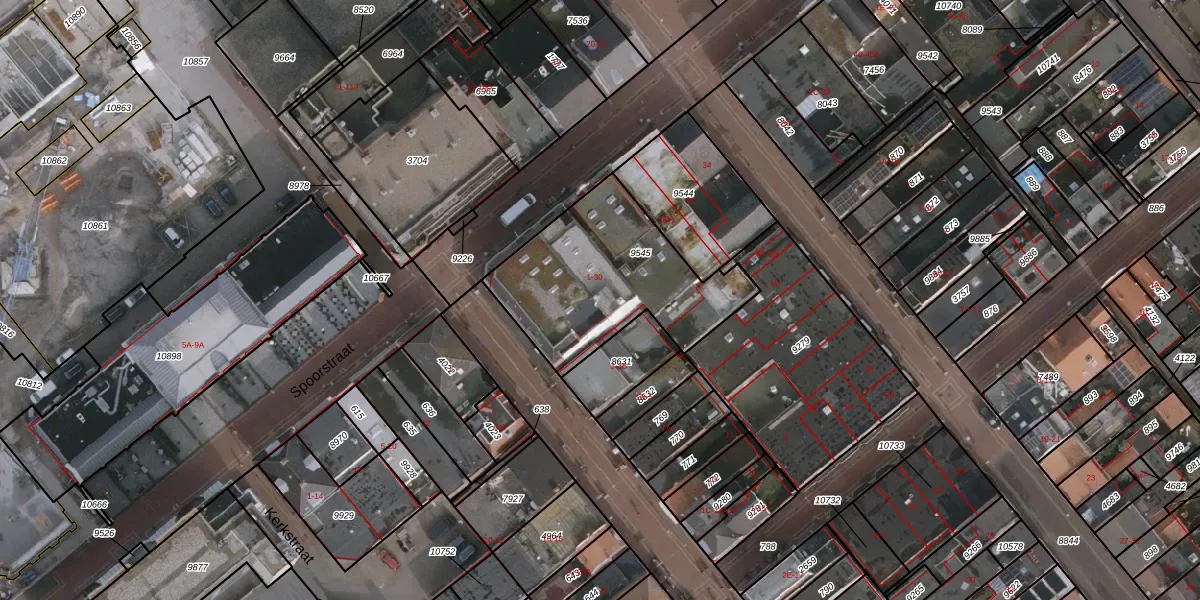 Het perceel waarop Keizerstraat 1-R staat heeft een oppervlakte van 734 m². Dit is een groot perceel. De perceeloppervlakte wordt geregistreerd door het Kadaster. Gedetailleerde informatie over de maten van dit perceel kunt u vinden in het rapport Kadastrale kaart met maatvoering van Keizerstraat 1-R.