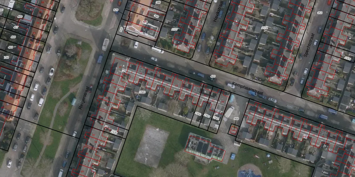 Het perceel waarop Kemphaanstraat 14 staat heeft een oppervlakte van 1757 m². Dit is een zeer groot perceel. De perceeloppervlakte wordt geregistreerd door het Kadaster. Gedetailleerde informatie over de maten van dit perceel kunt u vinden in het rapport Kadastrale kaart met maatvoering van Kemphaanstraat 14.