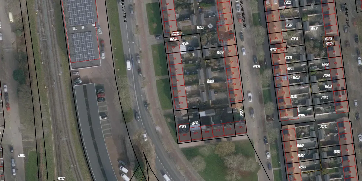 Het perceel waarop Kievitstraat 101 staat heeft een oppervlakte van 1480 m². Dit is een zeer groot perceel. De perceeloppervlakte wordt geregistreerd door het Kadaster. Gedetailleerde informatie over de maten van dit perceel kunt u vinden in het rapport Kadastrale kaart met maatvoering van Kievitstraat 101.