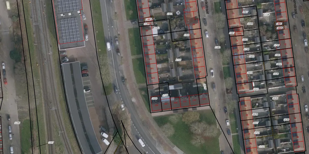 Het perceel waarop Kievitstraat 103 staat heeft een oppervlakte van 1480 m². Dit is een zeer groot perceel. De perceeloppervlakte wordt geregistreerd door het Kadaster. Gedetailleerde informatie over de maten van dit perceel kunt u vinden in het rapport Kadastrale kaart met maatvoering van Kievitstraat 103.