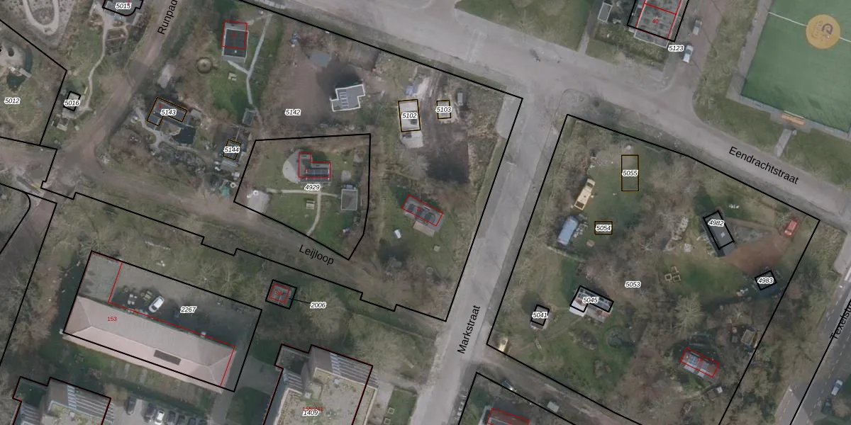 Het perceel waarop Leijloop 8 staat heeft een oppervlakte van 5934 m². Dit is een zeer groot perceel. De perceeloppervlakte wordt geregistreerd door het Kadaster. Gedetailleerde informatie over de maten van dit perceel kunt u vinden in het rapport Kadastrale kaart met maatvoering van Leijloop 8.