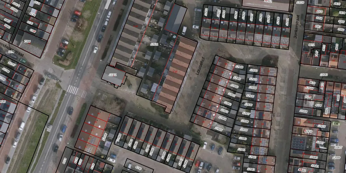 Het perceel waarop Louisehof 25 staat heeft een oppervlakte van 2954 m². Dit is een zeer groot perceel. De perceeloppervlakte wordt geregistreerd door het Kadaster. Gedetailleerde informatie over de maten van dit perceel kunt u vinden in het rapport Kadastrale kaart met maatvoering van Louisehof 25.