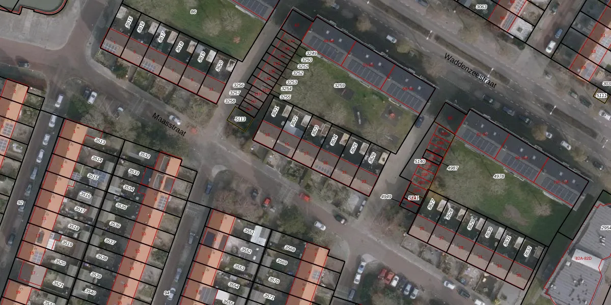Het perceel waarop Maasstraat 17 staat heeft een oppervlakte van 114 m². Dit is een middelgroot perceel. De perceeloppervlakte wordt geregistreerd door het Kadaster. Gedetailleerde informatie over de maten van dit perceel kunt u vinden in het rapport Kadastrale kaart met maatvoering van Maasstraat 17.