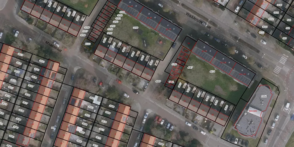 Het perceel waarop Maasstraat 23 staat heeft een oppervlakte van 117 m². Dit is een middelgroot perceel. De perceeloppervlakte wordt geregistreerd door het Kadaster. Gedetailleerde informatie over de maten van dit perceel kunt u vinden in het rapport Kadastrale kaart met maatvoering van Maasstraat 23.