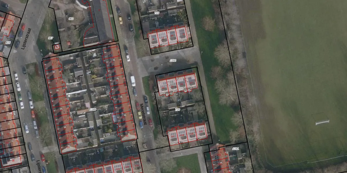 Het perceel waarop Merelstraat 21 staat heeft een oppervlakte van 1179 m². Dit is een zeer groot perceel. De perceeloppervlakte wordt geregistreerd door het Kadaster. Gedetailleerde informatie over de maten van dit perceel kunt u vinden in het rapport Kadastrale kaart met maatvoering van Merelstraat 21.
