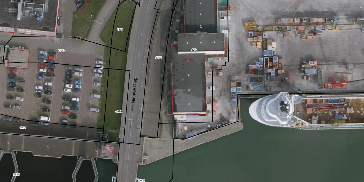 Het perceel waarop Paleiskade 100 staat heeft een oppervlakte van 2224 m². Dit is een zeer groot perceel. De perceeloppervlakte wordt geregistreerd door het Kadaster. Gedetailleerde informatie over de maten van dit perceel kunt u vinden in het rapport Kadastrale kaart met maatvoering van Paleiskade 100.
