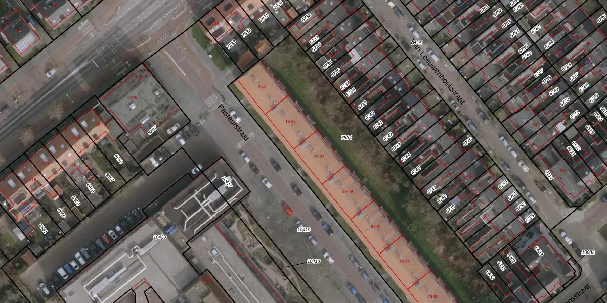 Het perceel waarop Pasteurstraat 27 staat heeft een oppervlakte van 3306 m². Dit is een zeer groot perceel. De perceeloppervlakte wordt geregistreerd door het Kadaster. Gedetailleerde informatie over de maten van dit perceel kunt u vinden in het rapport Kadastrale kaart met maatvoering van Pasteurstraat 27.