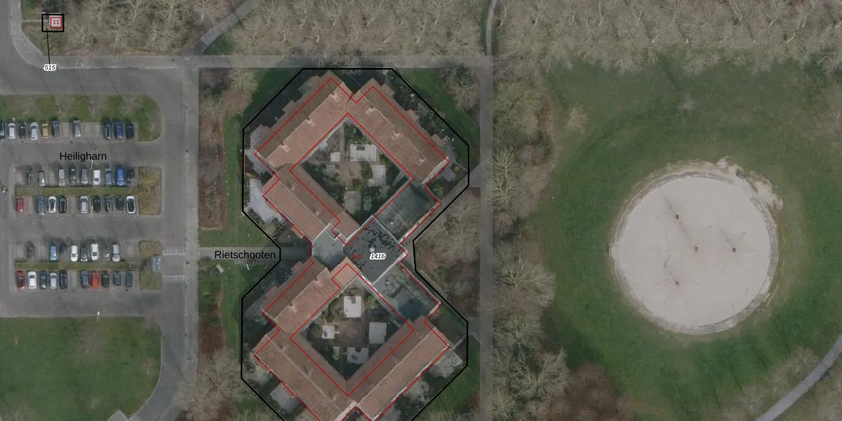 Het perceel waarop Rietschooten 12 staat heeft een oppervlakte van 3839 m². Dit is een zeer groot perceel. De perceeloppervlakte wordt geregistreerd door het Kadaster. Gedetailleerde informatie over de maten van dit perceel kunt u vinden in het rapport Kadastrale kaart met maatvoering van Rietschooten 12.