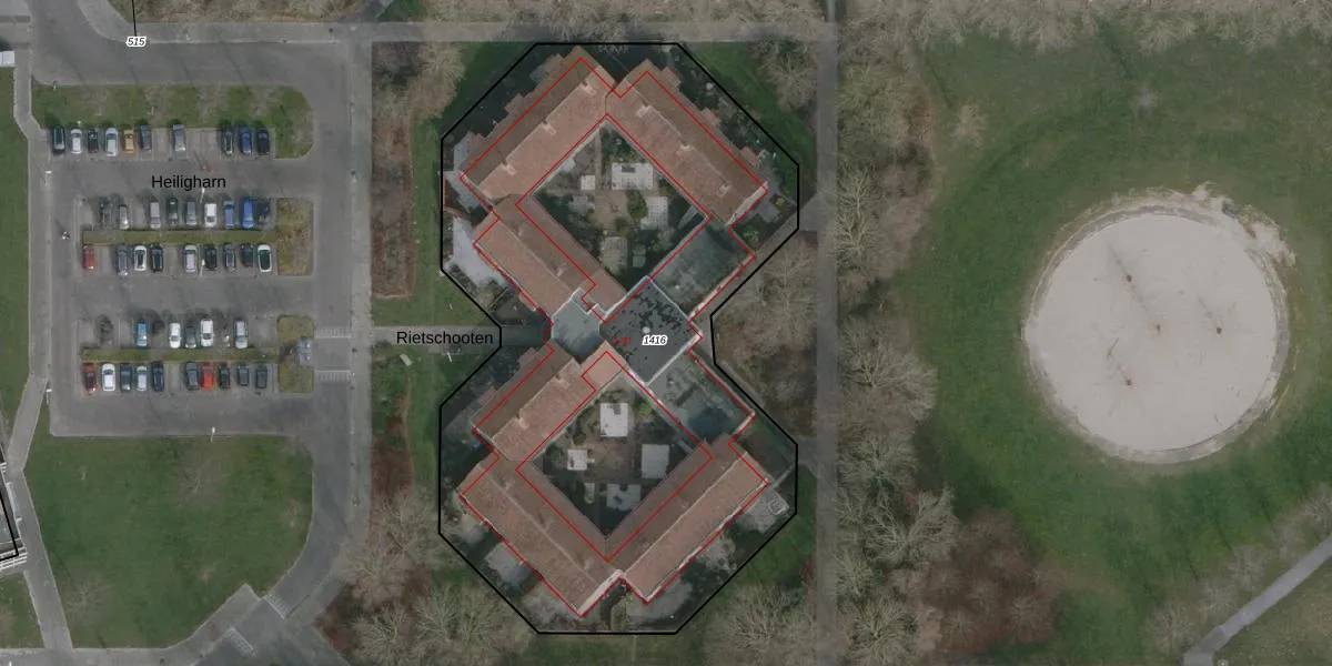 Het perceel waarop Rietschooten 20 staat heeft een oppervlakte van 3839 m². Dit is een zeer groot perceel. De perceeloppervlakte wordt geregistreerd door het Kadaster. Gedetailleerde informatie over de maten van dit perceel kunt u vinden in het rapport Kadastrale kaart met maatvoering van Rietschooten 20.