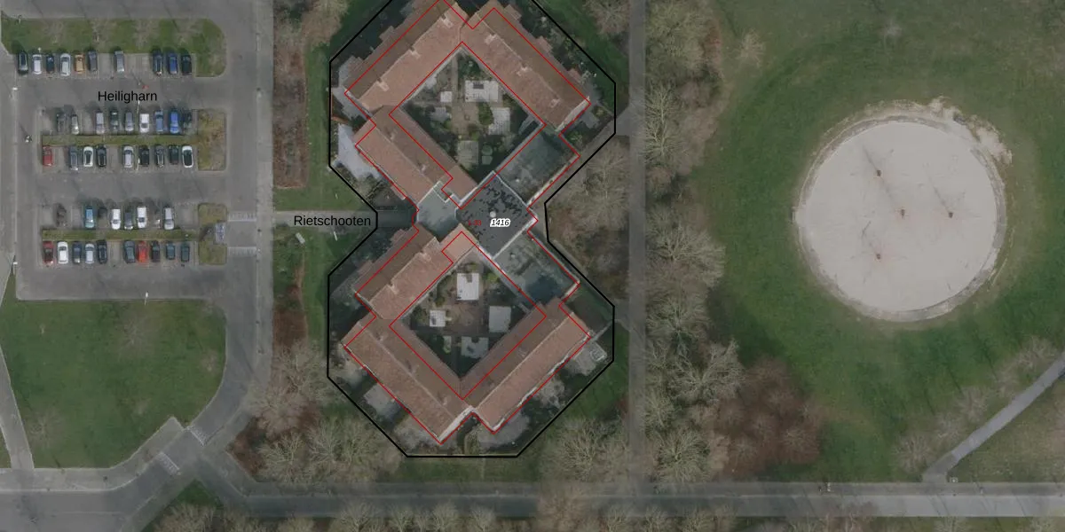 Het perceel waarop Rietschooten 26 staat heeft een oppervlakte van 3839 m². Dit is een zeer groot perceel. De perceeloppervlakte wordt geregistreerd door het Kadaster. Gedetailleerde informatie over de maten van dit perceel kunt u vinden in het rapport Kadastrale kaart met maatvoering van Rietschooten 26.