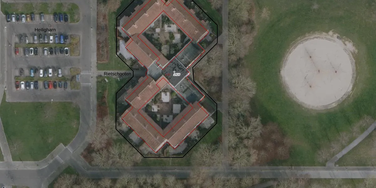 Het perceel waarop Rietschooten 30 staat heeft een oppervlakte van 3839 m². Dit is een zeer groot perceel. De perceeloppervlakte wordt geregistreerd door het Kadaster. Gedetailleerde informatie over de maten van dit perceel kunt u vinden in het rapport Kadastrale kaart met maatvoering van Rietschooten 30.