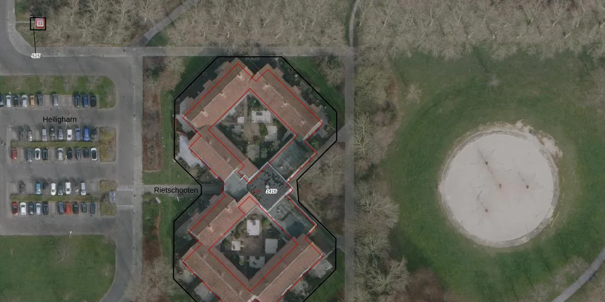 Het perceel waarop Rietschooten 8 staat heeft een oppervlakte van 3839 m². Dit is een zeer groot perceel. De perceeloppervlakte wordt geregistreerd door het Kadaster. Gedetailleerde informatie over de maten van dit perceel kunt u vinden in het rapport Kadastrale kaart met maatvoering van Rietschooten 8.