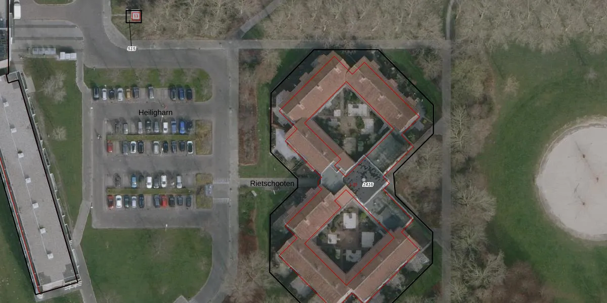 Het perceel waarop Rietschooten 9 staat heeft een oppervlakte van 3839 m². Dit is een zeer groot perceel. De perceeloppervlakte wordt geregistreerd door het Kadaster. Gedetailleerde informatie over de maten van dit perceel kunt u vinden in het rapport Kadastrale kaart met maatvoering van Rietschooten 9.