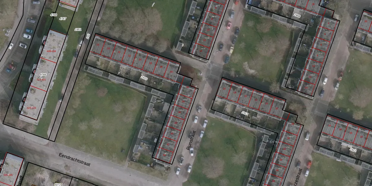 Het perceel waarop Runstraat 32 staat heeft een oppervlakte van 1406 m². Dit is een zeer groot perceel. De perceeloppervlakte wordt geregistreerd door het Kadaster. Gedetailleerde informatie over de maten van dit perceel kunt u vinden in het rapport Kadastrale kaart met maatvoering van Runstraat 32.