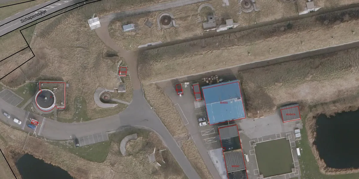 Het perceel waarop Schapendijkje 8-D-080 staat heeft een oppervlakte van 44,1 ha. Dit is een zeer groot perceel. De perceeloppervlakte wordt geregistreerd door het Kadaster. Gedetailleerde informatie over de maten van dit perceel kunt u vinden in het rapport Kadastrale kaart met maatvoering van Schapendijkje 8-D-080.