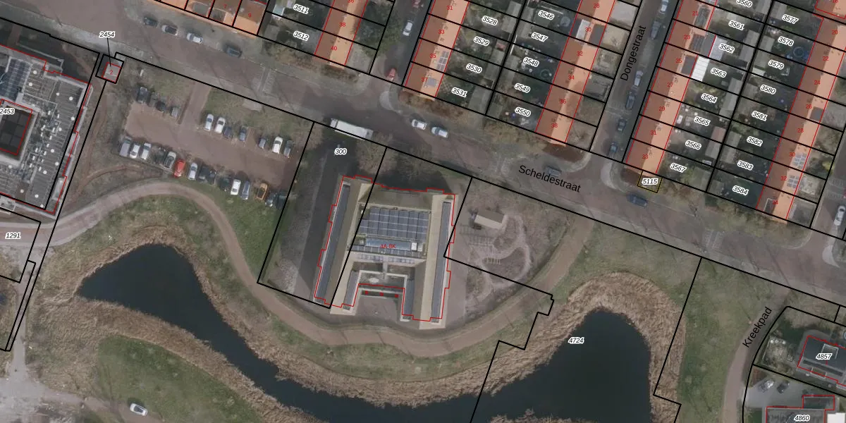 Het perceel waarop Scheldestraat 4-G staat heeft een oppervlakte van 8,4 ha. Dit is een zeer groot perceel. De perceeloppervlakte wordt geregistreerd door het Kadaster. Gedetailleerde informatie over de maten van dit perceel kunt u vinden in het rapport Kadastrale kaart met maatvoering van Scheldestraat 4-G.