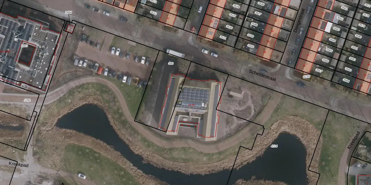 Het perceel waarop Scheldestraat 4-J staat heeft een oppervlakte van 8,4 ha. Dit is een zeer groot perceel. De perceeloppervlakte wordt geregistreerd door het Kadaster. Gedetailleerde informatie over de maten van dit perceel kunt u vinden in het rapport Kadastrale kaart met maatvoering van Scheldestraat 4-J.
