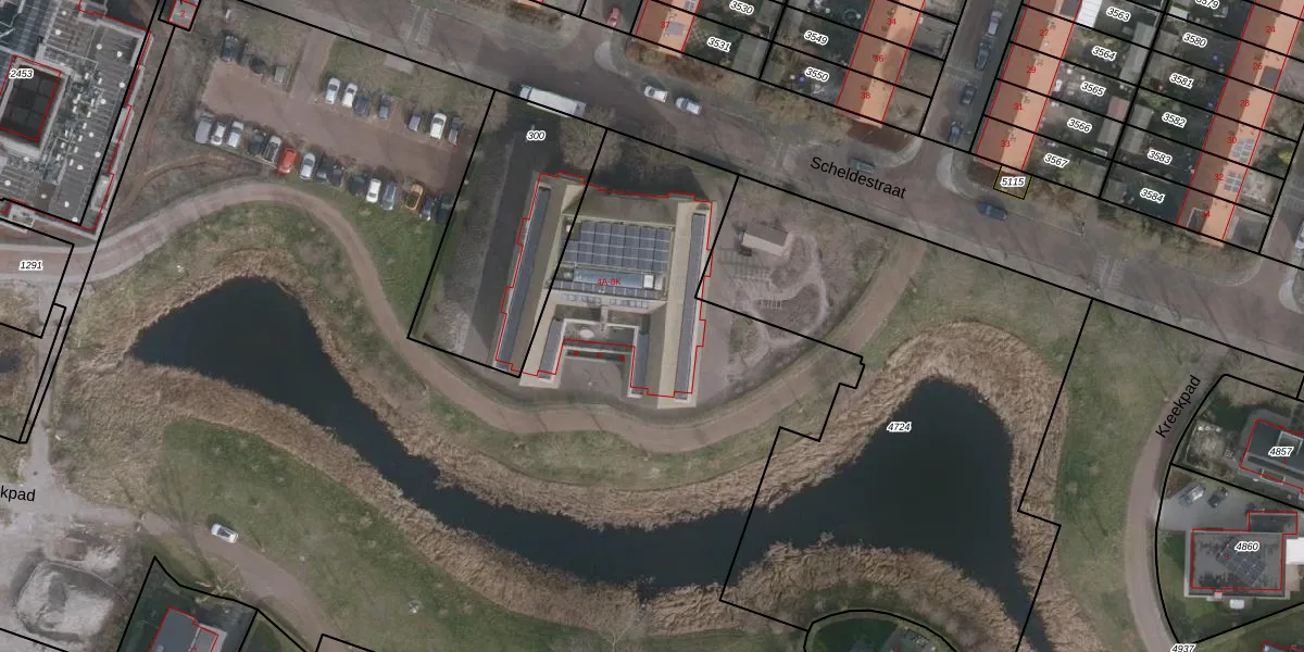 Het perceel waarop Scheldestraat 8-D staat heeft een oppervlakte van 8,4 ha. Dit is een zeer groot perceel. De perceeloppervlakte wordt geregistreerd door het Kadaster. Gedetailleerde informatie over de maten van dit perceel kunt u vinden in het rapport Kadastrale kaart met maatvoering van Scheldestraat 8-D.