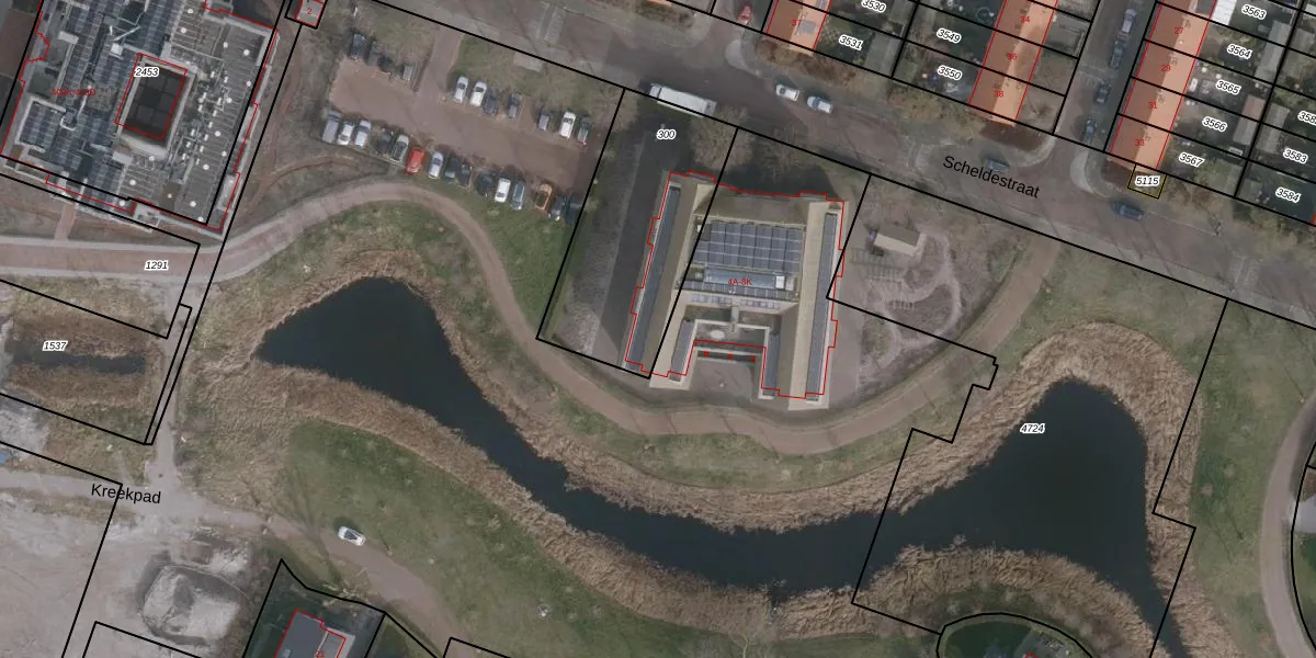 Het perceel waarop Scheldestraat 8-E staat heeft een oppervlakte van 727 m². Dit is een groot perceel. De perceeloppervlakte wordt geregistreerd door het Kadaster. Gedetailleerde informatie over de maten van dit perceel kunt u vinden in het rapport Kadastrale kaart met maatvoering van Scheldestraat 8-E.