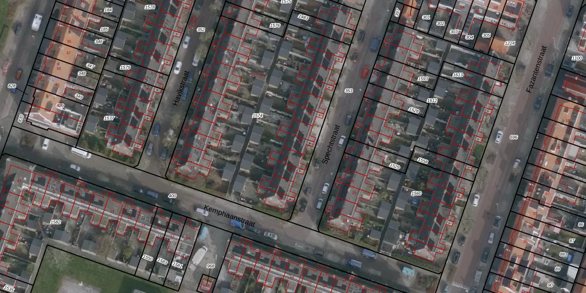 Het perceel waarop Spechtstraat 22 staat heeft een oppervlakte van 2759 m². Dit is een zeer groot perceel. De perceeloppervlakte wordt geregistreerd door het Kadaster. Gedetailleerde informatie over de maten van dit perceel kunt u vinden in het rapport Kadastrale kaart met maatvoering van Spechtstraat 22.