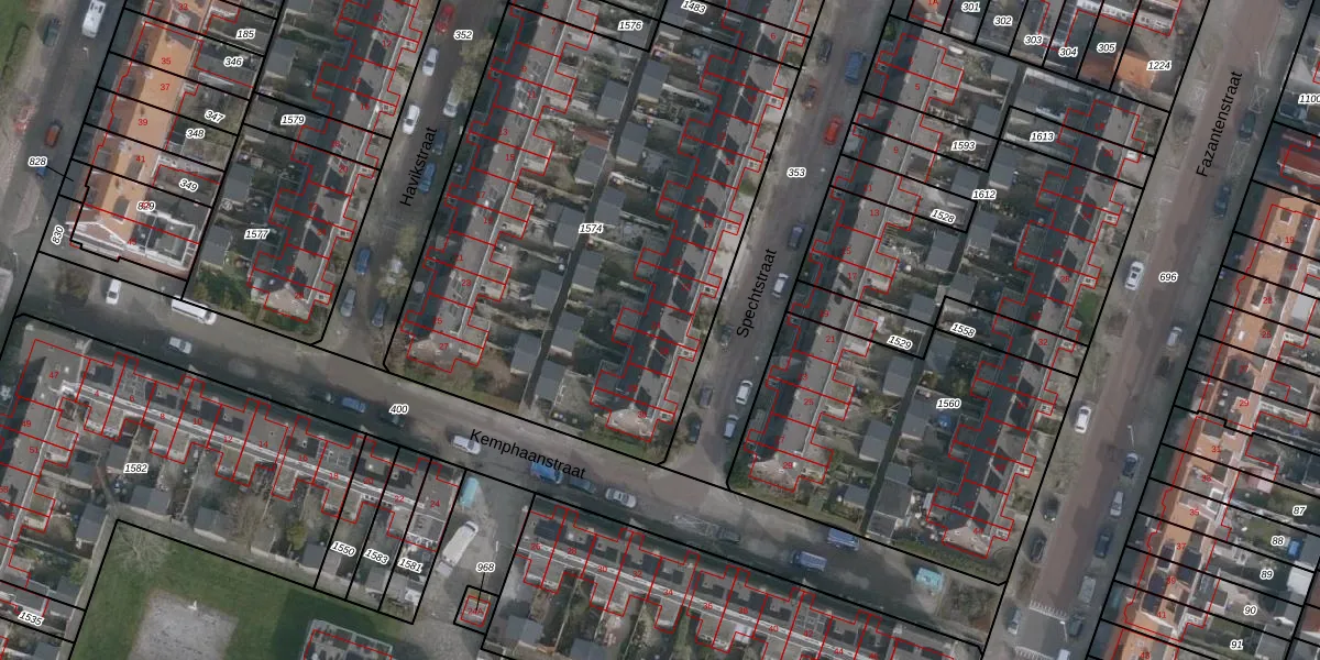 Het perceel waarop Spechtstraat 24 staat heeft een oppervlakte van 2759 m². Dit is een zeer groot perceel. De perceeloppervlakte wordt geregistreerd door het Kadaster. Gedetailleerde informatie over de maten van dit perceel kunt u vinden in het rapport Kadastrale kaart met maatvoering van Spechtstraat 24.