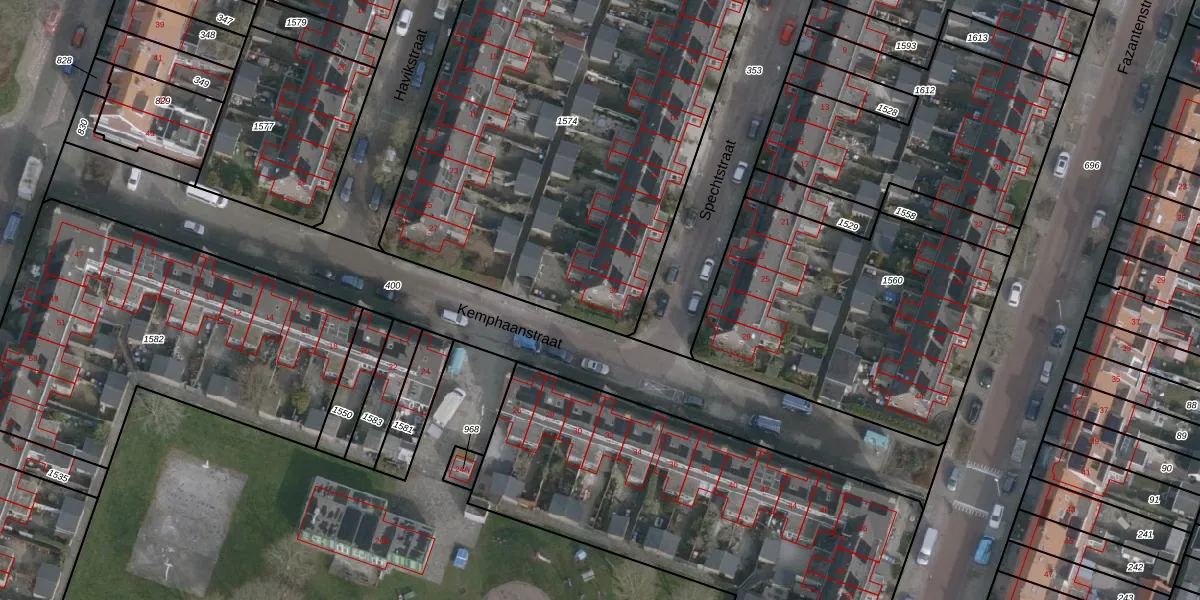 Het perceel waarop Spechtstraat 30 staat heeft een oppervlakte van 2759 m². Dit is een zeer groot perceel. De perceeloppervlakte wordt geregistreerd door het Kadaster. Gedetailleerde informatie over de maten van dit perceel kunt u vinden in het rapport Kadastrale kaart met maatvoering van Spechtstraat 30.