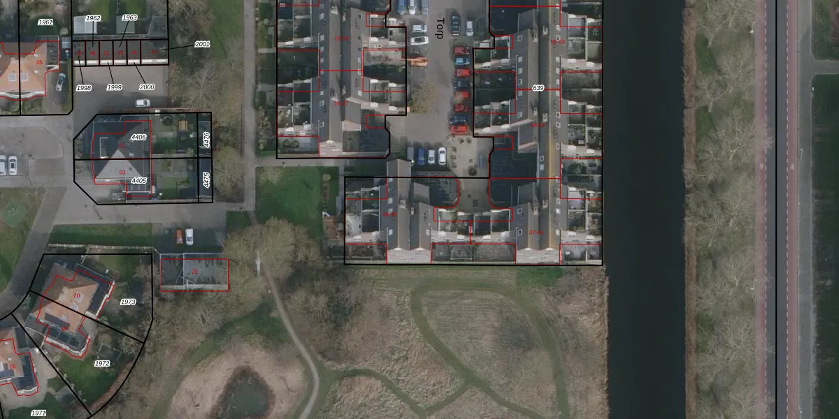 Het perceel waarop Torp 33 staat heeft een oppervlakte van 3070 m². Dit is een zeer groot perceel. De perceeloppervlakte wordt geregistreerd door het Kadaster. Gedetailleerde informatie over de maten van dit perceel kunt u vinden in het rapport Kadastrale kaart met maatvoering van Torp 33.