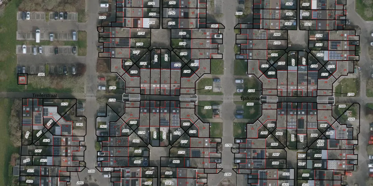 Het perceel waarop Treilerstraat 19 staat heeft een oppervlakte van 26 m². Dit is een klein perceel. De perceeloppervlakte wordt geregistreerd door het Kadaster. Gedetailleerde informatie over de maten van dit perceel kunt u vinden in het rapport Kadastrale kaart met maatvoering van Treilerstraat 19.