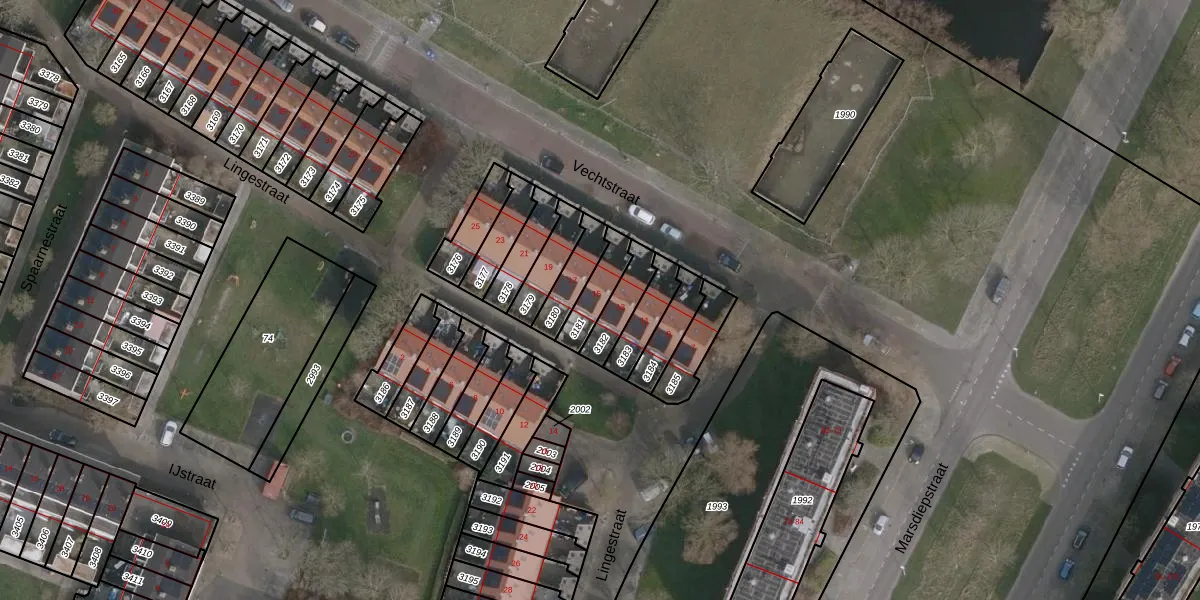 Het perceel waarop Vechtstraat 15 staat heeft een oppervlakte van 96 m². Dit is een klein perceel. De perceeloppervlakte wordt geregistreerd door het Kadaster. Gedetailleerde informatie over de maten van dit perceel kunt u vinden in het rapport Kadastrale kaart met maatvoering van Vechtstraat 15.