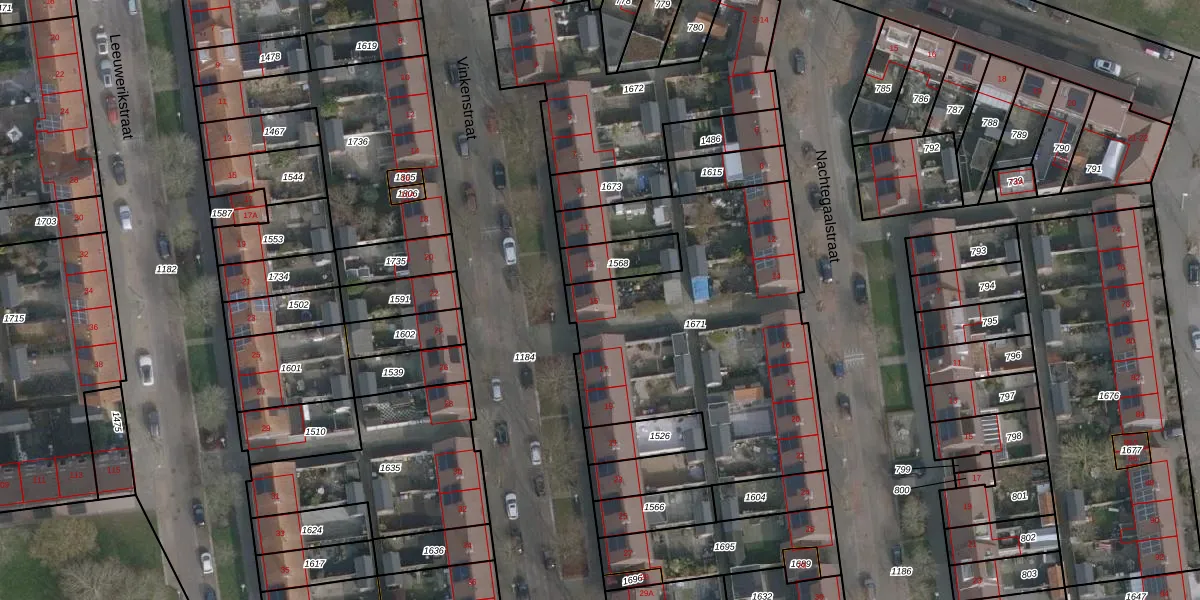 Het perceel waarop Vinkenstraat 15 staat heeft een oppervlakte van 1663 m². Dit is een zeer groot perceel. De perceeloppervlakte wordt geregistreerd door het Kadaster. Gedetailleerde informatie over de maten van dit perceel kunt u vinden in het rapport Kadastrale kaart met maatvoering van Vinkenstraat 15.
