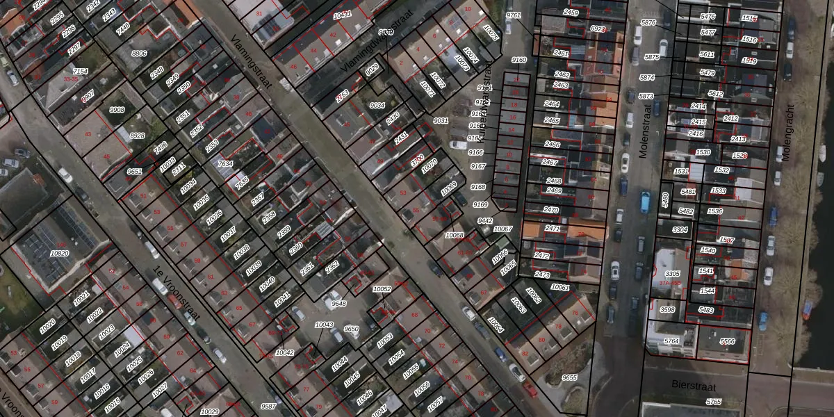 Het perceel waarop Vlamingstraat 55 staat heeft een oppervlakte van 94 m². Dit is een klein perceel. De perceeloppervlakte wordt geregistreerd door het Kadaster. Gedetailleerde informatie over de maten van dit perceel kunt u vinden in het rapport Kadastrale kaart met maatvoering van Vlamingstraat 55.