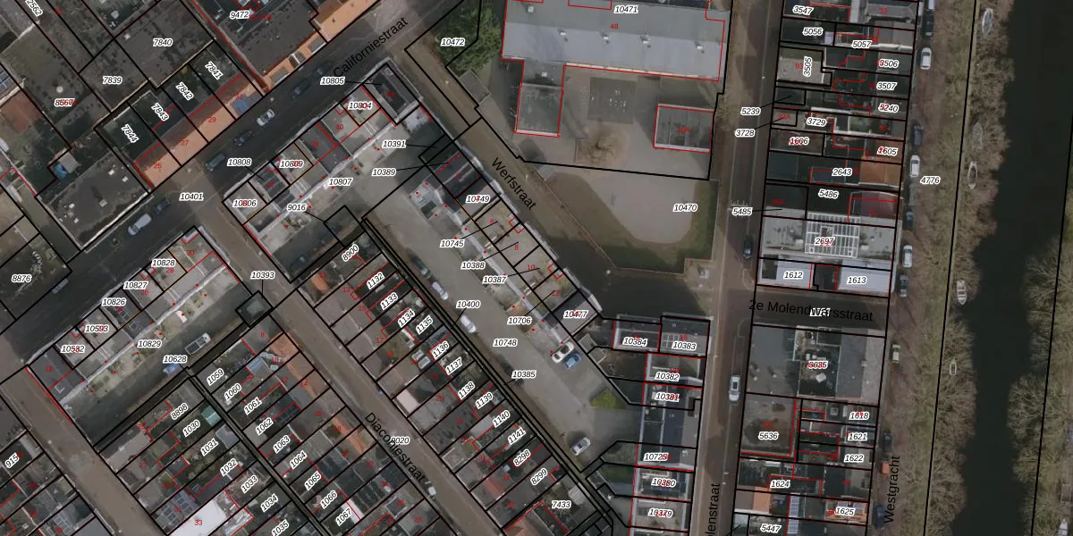 Het perceel waarop Werfstraat 10 staat heeft een oppervlakte van 37 m². Dit is een klein perceel. De perceeloppervlakte wordt geregistreerd door het Kadaster. Gedetailleerde informatie over de maten van dit perceel kunt u vinden in het rapport Kadastrale kaart met maatvoering van Werfstraat 10.
